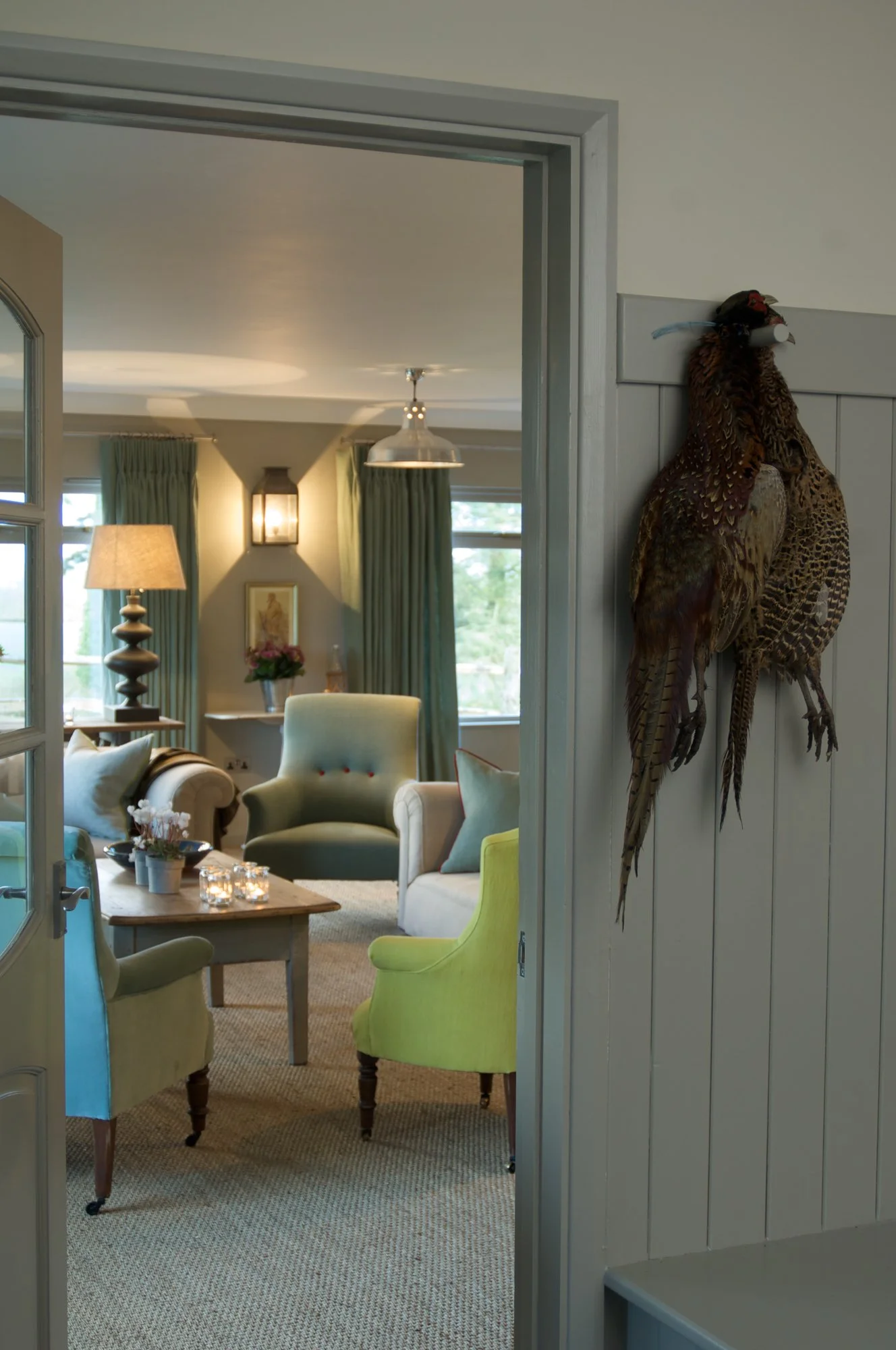 A practical, comfortable hospitality space for up to 18 guns was requested by the client for a pheasant shoot set amidst the Devon countryside. The combination of practicality, and excellent hospitality was of significance to the design of the space.
